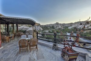 Şah Saray Cave Suites’in Göreme’nin yüksek noktasındaki konumu, sabah saatlerinde balonları en net şekilde izleme avantajı sunar.